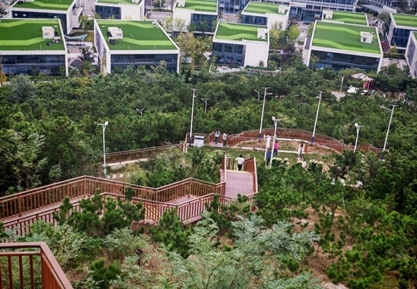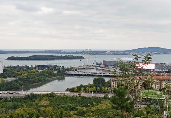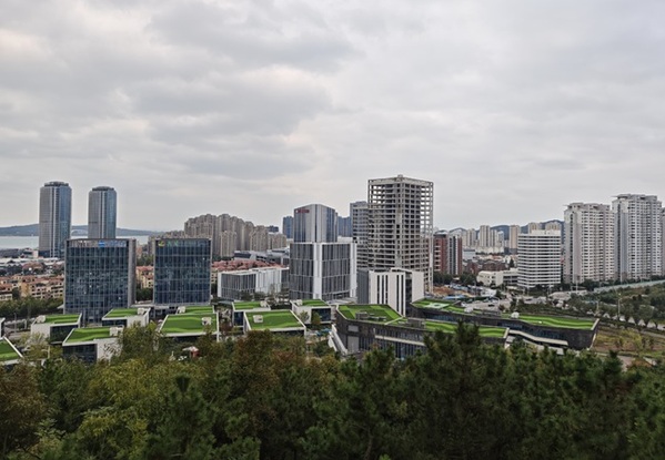 顺利抵达山顶后,豁然开朗的景色令所有同学精神为之一振。俯瞰熟悉的校园与城市风貌,一股“会当凌绝顶,一览众山小”的豪情在大家心中油然而生。寒意被登顶的成就感与满腔热情驱散,同学们聚在一起,展开了热烈的交流与感悟分享。一幅壮阔的画卷在同学们眼前豁然展开:一侧是秋日层林尽染、城市建筑错落有致的“城中山景”,另一侧则是水天相接、波光粼粼的无垠海面。这“一面是人间烟火,一面是海阔天空”的独特景致,让所有同学为之震撼与沉思。