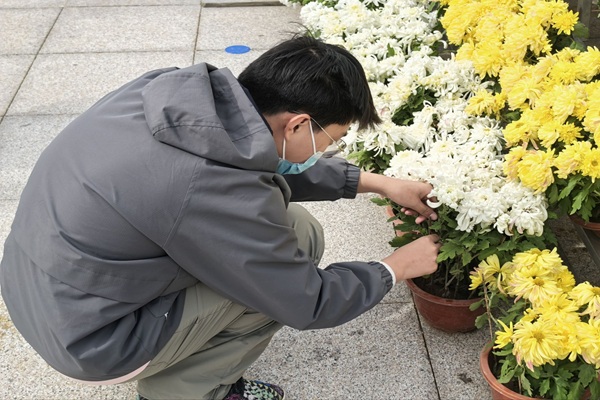 参观结束后,同学们迅速投入到志愿服务中。大家纷纷拿起的扫帚、纸巾、垃圾袋等工具,分工协作,有条不紊地开展清扫工作。有的同学弯腰仔细清扫陵园内的落叶与杂物,不放过任何一个卫生死角;有的同学则小心翼翼地擦拭墓碑,用双手拂去尘埃,让每一块镌刻着英雄名字的墓碑都显得格外洁净庄重。尽管天气微凉,但同学们热情高涨,以实际行动表达对革命先烈的缅怀与敬意,整个劳动过程中,现场秩序井然,氛围肃穆。