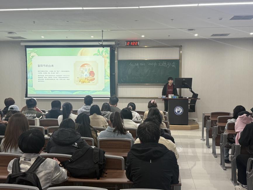 为传承中华优秀传统文化,弘扬敬老孝亲美德,10月20日化研2502与化研2503班联合开展“九九重阳节”主题班会。本次班会以“溯源、赏俗、践德”为核心,带领同学们深入了解重阳节的历史渊源与文化内涵,在学习与互动中感受传统节日的独特魅力。