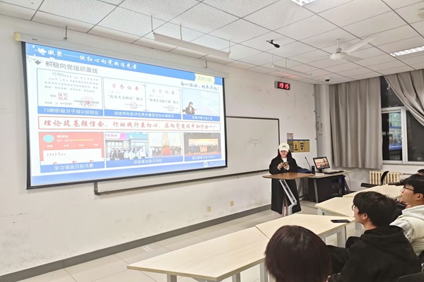 紧接着,班助邵梓怡上台为同学们复现了她的“国家奖学金”答辩,答辩过程十分精彩,在答辩结束后,同学们纷纷鼓掌,班主任更是认为没有听够。随后邵梓怡为同学们讲解每一张PPT所展示了自己的哪些成果,并向同学们讲解在哪一段时期我们要争取去多做些什么,如何利用好有限的时间去完成这些事。在最后她认为学习依旧是决定这项荣誉的一个重要因素。