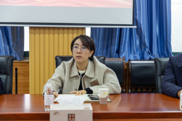 会上,学院首先就心理健康教育工作开展情况及特色活动进行汇报。薛慧围绕学院构建的“4321”心理工作机制展开详细介绍:“4 级教育”层层递进,通过“日日小感”引导学生关注日常情绪、“周周微课”普及基础心理知识、“月月讲座”聚焦重点心理议题、“年年测评”精准掌握学生心理状态;“3 支队伍”协同发力,以学生工作队伍为核心、心理委员队伍为纽带、学校心站队伍为支撑,织密心理健康服务网络;“2 个导向”精准赋能,一方面以行动为导向,多举办实践体验类心理活动,另一方面以网络心理健康平台为导向,拓宽心理服务覆盖渠道;“1 个特色”亮点突出,创新探索“艺术+心理”特色途径,将艺术表达与心理疏导有机结合,为学生心理健康成长注入新活力。