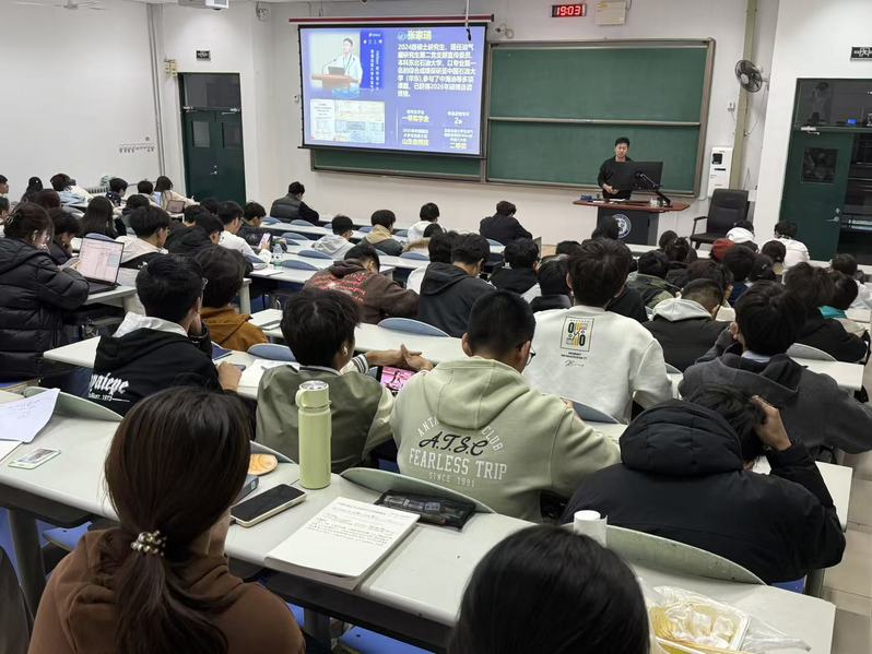宣讲会结束团支部大合影 薛雅月摄宣讲会由智汇能源协会社团成员张家瑞主讲,核心围绕“科技创新落地方法”展开:先拆解科技创新入门步骤,结合案例讲解科技创新的思路;再详细介绍适合大一参与的科技类竞赛,包括报名时间、备赛重点及组队技巧;最后分享加入导师科研团队等思路参与科创。同时设置答疑环节,针对性解决大家“怕跟不上科研节奏”“不知如何选竞赛”的困惑,参会成员们踊跃提出自己的困惑,现场交流氛围浓厚。