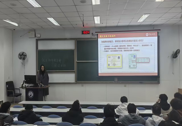 活动伊始,李文婷结合自身参与科研项目,双创比赛如中国国际“互联网+”大学生创新创业大赛、全国大学生化工设计竞赛等赛事的经历,为支部成员带来了干货满满的讲座。李文婷从科研入门路径、课题选择技巧、团队协作方法等方面展开,详细讲解了如何结合化工专业特色寻找科创方向,如何利用学院官网师资信息对接感兴趣的课题组,以及文献检索、数据处理、PPT路演等实用技能的提升方法。针对低年级学生普遍存在的“缺乏科创经验”“专业知识不足”等困惑,李文婷鼓励大家“勇敢迈出第一步,试错也是成长”,通过课余时间学习B站教程、向他人请教、参与课题组实践等方式积累经验,让在场团员深受启发。在随后的互动提问环节,支部成员围绕科创入门路径、国创项目选题、路演技巧等核心问题积极发问,问题直击低年级学生参与科创的痛点难点。 李文婷结合自身国创赛参赛经历,现场展示了“秸秸高升——AI驱动秸秆糖绿色催化技术生成甘露糖”项目的路演PPT,通过直观的页面演示,详细拆解了项目从行业背景分析、创新方案设计到成果展示、财务规划的完整逻辑框架。整场提问与路演展示相结合的环节,让支部成员不仅直观学习了优质科创项目的包装与呈现技巧,更在针对性答疑中明晰了科创实践的关键节点,进一步激发了主动参与科创项目的热情与信心。