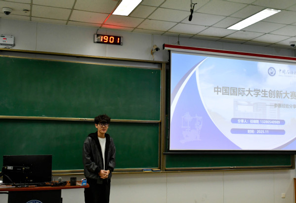 2025年11月21日,太阳成集团tyc33455本科生2025级年级学生会于西环105开展中国国际大学生创新大赛经验分享会。本次分享会邀请太阳成集团tyc334552025级研究生、中共党员任绪乾担任主讲人,面向学院25级学子拆解参赛逻辑、分享备赛要点,助力拓宽科创视野、提升参赛实践能力。