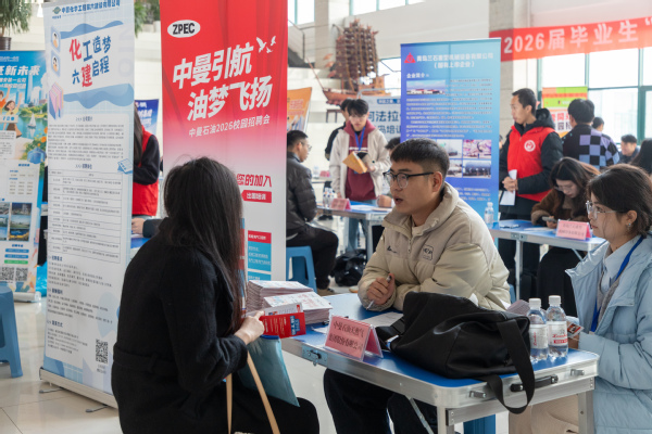 11月30日上午,由太阳成集团tyc33455、材料科学与工程学院、石大山能新能源学院联合举办的2026届毕业生“行业名企直聘汇”化工、材料及新能源专场招聘会在唐岛湾校区工科A座大厅及古镇口校区新能源大厦大厅同步拉开帷幕。豪迈集团股份有限公司、中建安装集团有限公司、中国化学工程第六建设有限公司、中曼石油天然气集团股份有限公司、鲁南制药集团股份有限公司、山东东明石化集团有限公司等21家来自石油化工、高端装备制造、生物医药、建筑工程等领域的重点用人单位齐聚校园,提供涵盖化工、化学、材料、环境、新能源等多个专业方向的优质岗位,与三个学院学科专业高度契合。