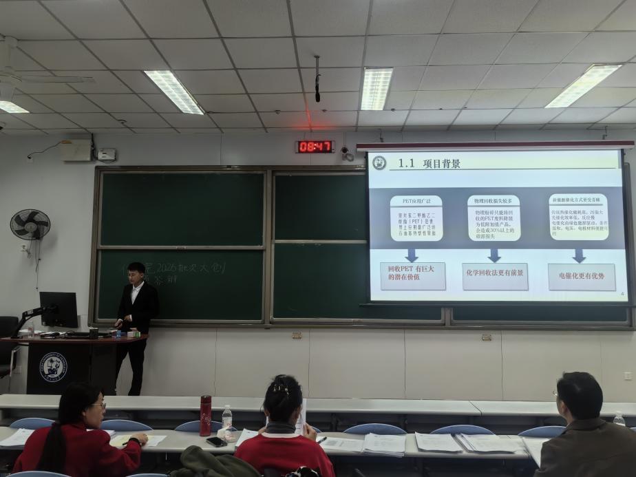 答辩现场,各项目团队按组依次登台,借助精心制作的PPT,围绕研究背景、核心创意、技术路线、实施计划及预期成果等核心内容展开汇报,从应化领域的新材料研发到重油加工的技术革新,从化工工艺的绿色优化到生物制剂的应用探索,从环境治理的创新方案到化学基础研究的前沿突破,各项目选题紧密贴合学科发展前沿与实际应用需求,充分彰显了同学们的创新思维与实践视野;18位教师评委认真评审每个项目汇报,结合自身专业积淀,从项目的创新性、科学可行性、学术规范性、应用价值及团队执行能力等多个维度进行细致评议,针对部分项目在研究逻辑、技术细节或成果转化等方面的不足当场提出针对性改进建议,既有宏观方向的指引,也有具体实施的点拨,为项目团队后续完善方案提供了宝贵思路,现场思维碰撞激烈、学术氛围浓厚,充分发挥了答辩会“以评促建、以评促改”的重要作用。