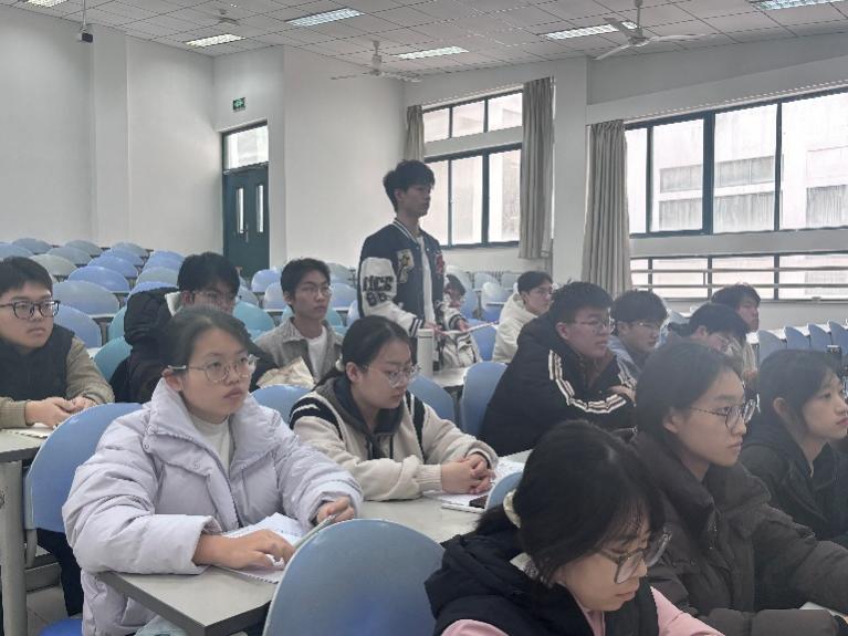 随后,师生们集中观看曹本熹院士事迹纪录片,屏幕中“重病仍坚持整日工作”的片段,让现场气氛愈发凝重。交流环节中,梁琛同学分享道:“最触动我的是曹院士那句‘我这一生不过是把个人理想融入了国家需要’——这哪里是‘不过’,是把个人的光热,完完全全熔铸进了国家的脊梁里。”现场同学纷纷附和,讲述自己从展览细节中感受到的“择一事终一生”的纯粹与赤诚。