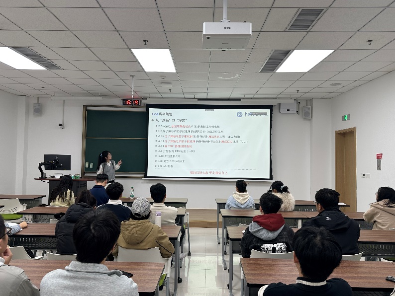 2024 级刘营营同学以“从选题到发表” 为核心主线,复盘了其在国际顶级期刊《Advanced Materials》发表论文的完整历程。她着重强调科研规划与时间管理的核心价值,建议同学们把握精力最充沛的黄金时段攻克核心任务,通过定期复盘实验过程、沉淀思考成果,持续优化研究路径、提升科研效率。此外,她还分享了平衡科研、学生工作与个人爱好的实用技巧,鼓励大家以积极平稳的心态面对研究生生活的多元挑战,在张弛有度中保持成长动力。