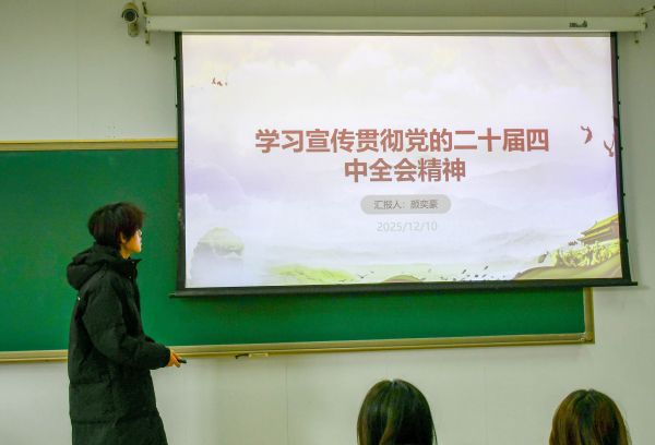 2025年12月10日上午,化工2508 团支部于南堂106教室开展 “学习宣传贯彻党的二十届四中全会精神” 组织化学习 。活动由团支部级团支书颜奕豪担任汇报人,全体支部成员参与,通过理论讲解、互动研讨、心得分享等形式,深入学习全会精神,凝聚青春奋进力量。