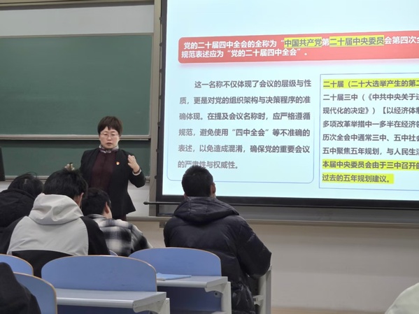 活动伊始,原丽红围绕“党的二十届四中全会精神解读”这一核心内容,系统梳理了全会的重要决策部署和战略考量。讲解紧密结合当前国家发展大局与青年成长实际,从理论维度、历史维度、实践维度深入阐释了中国式现代化的中国特色、本质要求与重大原则。强调要深刻领悟“两个确立”的决定性意义,增强“四个意识”、坚定“四个自信”、做到“两个维护”,自觉将思想和行动统一到全会精神上来。