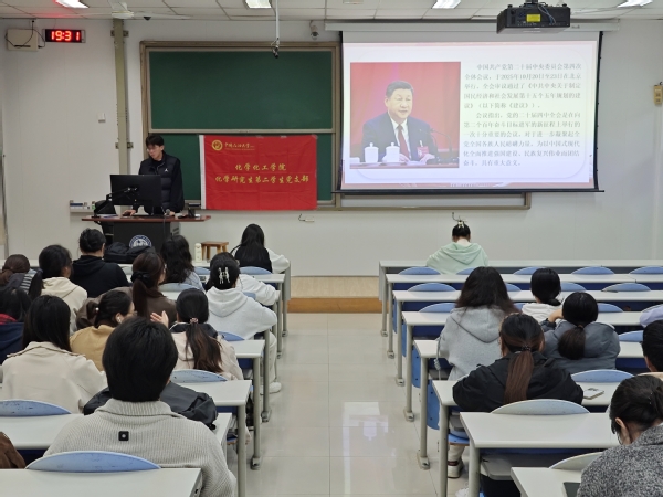 2025年11月5日,化学研究生第二学生党支部在南堂120教室组织开展了主题为“深学笃行党的二十届四中全会精神”的组织生活。会议由支部书记牛甲力同志主持,化学研究生第二学生党支部全体党员以及部分积极分子参加。
