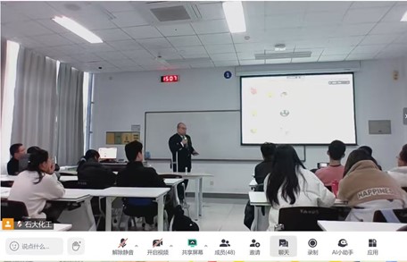 2025年12月18日,教育部化学工程与工艺专业虚拟教研室与山东省化学工程与工艺专业发展共同体举办行业发展前沿讲座,特邀原康龙化成高级工艺工程师黄鑫磊博士作了“迈向化工先进制造:连续制造、工艺工程与人工智能”的专题报告,来自我校、中国石油大学(北京)、广东石油化工学院、常州大学、青岛科技大学、山东科技大学等多所虚拟教研室和共同体共建高校的80余位师生通过线上或线下方式参加了会议,会议由化工学院副院长金鑫教授主持。