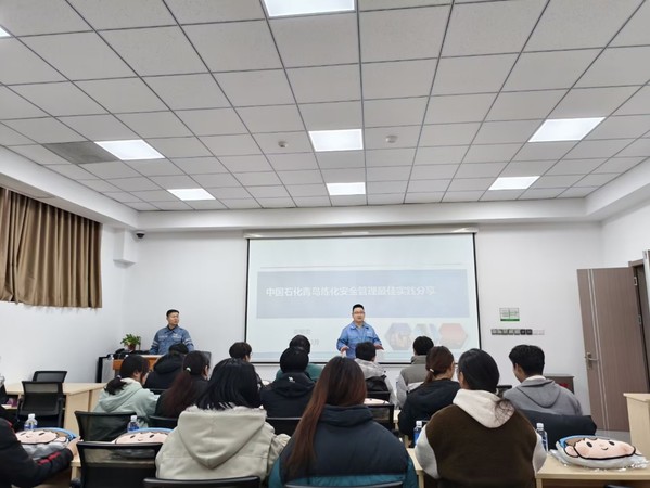 在中国石化青岛炼油化工有限责任公司,学院师生依次参观了企业安全体验中心、安全指挥中心和应急培训平台。企业车车间安全管理人员全面介绍了企业安全管理体系的建设情况与具体管控措施,帮助同学们对化工企业全链条安全管理模式形成了更为系统、深入的理解。