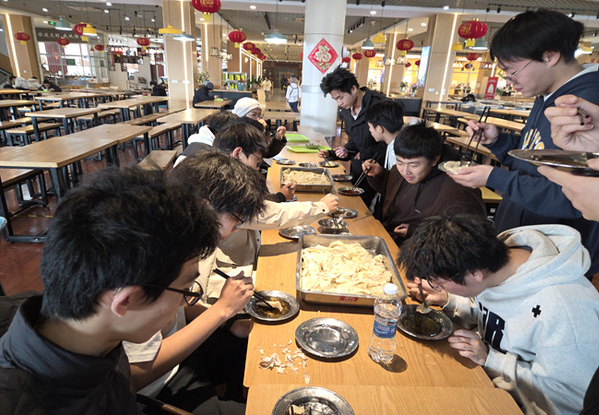 协作的时光转瞬即逝,当一锅锅热气腾腾的饺子陆续出锅,皮薄馅足、造型各异的饺子香气四溢。成员们围坐一堂,共同品尝亲手包制的成果,畅谈冬至习俗与校园生活趣事,餐厅内始终洋溢着温馨融洽的氛围,寒冬里的集体暖意愈发浓厚。