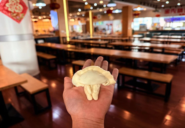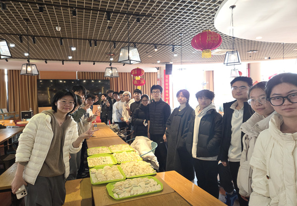 活动当日,荟萃餐厅指定区域内暖意融融,化工2507班全体成员围站桌旁,共同开启包饺子之旅。包制过程中,大家跳出传统样式局限,充分发挥创意。除经典月牙形饺子外,元宝形、花朵形等特色造型轮番亮相,部分成员还借鉴热门“饺子人”表情包,随手捏制出简约可爱的同款造型,引发现场阵阵欢笑。大家边包边交流,分享捏褶技巧、调侃创意造型,偶尔出现的“歪扭饺子”也成为欢乐源泉,拍照记录的身影穿插其间,定格温馨瞬间。