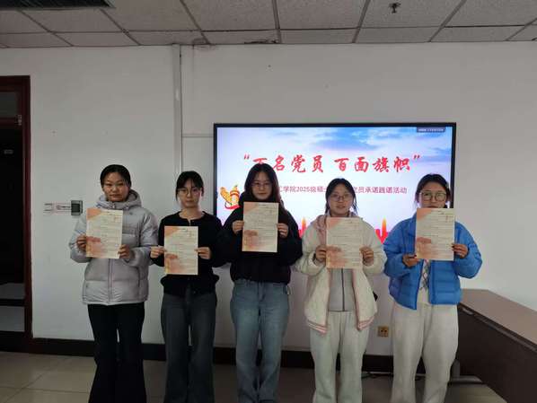 党员们在《百名党员 百面旗帜——进一步发挥学生党员先锋模范作用的承诺书》上签下自己的姓名,向党组织郑重承诺:在日常生活中,以身作则,彰显党员风采、于学术科研里,勇攀高峰,发挥先锋作用、当集体活动时,率先垂范,凝聚团队力量、在服务奉献中,无私无畏,践行党的宗旨。承诺书通过明确党员义务,细化党员责任,以书面形式规范学生党员言行的方式,引导学生党员不忘初心,勇于担当,促进党员立身为旗的行动自觉,用自己的实际行动为党旗添光彩。