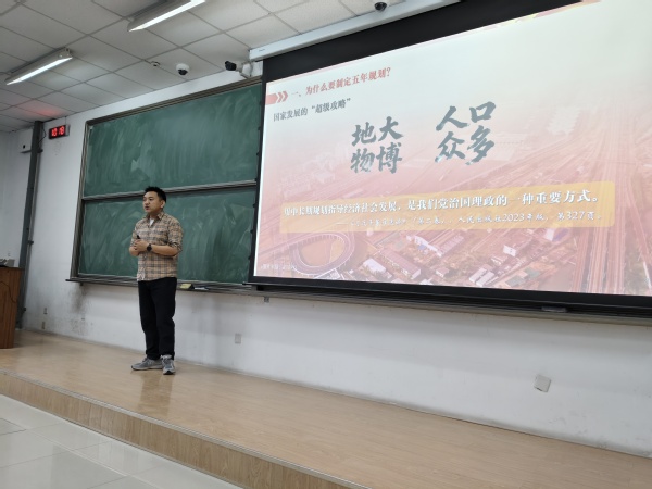 活动伊始,王鹏翔以时间为轴系统梳理了我国五年规划的演进历程。从“一五”计划集中力量发展重工业、奠定国家工业体系根基,到“十三五”规划决胜全面建成小康社会、实现脱贫攻坚战的全面胜利,再到“十四五”规划锚定高质量发展方向、聚焦科技创新与民生改善,支部成员们清晰认识到,五年规划作为我国国民经济和社会发展的顶层设计,始终是引领中国发展的“指南针”和“路线图”。他通过呈现的详实数据、清晰图表和生动案例,让支部成员直观感受到中国在70余年发展历程中,如何通过科学谋划、久久为功,实现了从站起来、富起来到强起来的伟大飞跃。