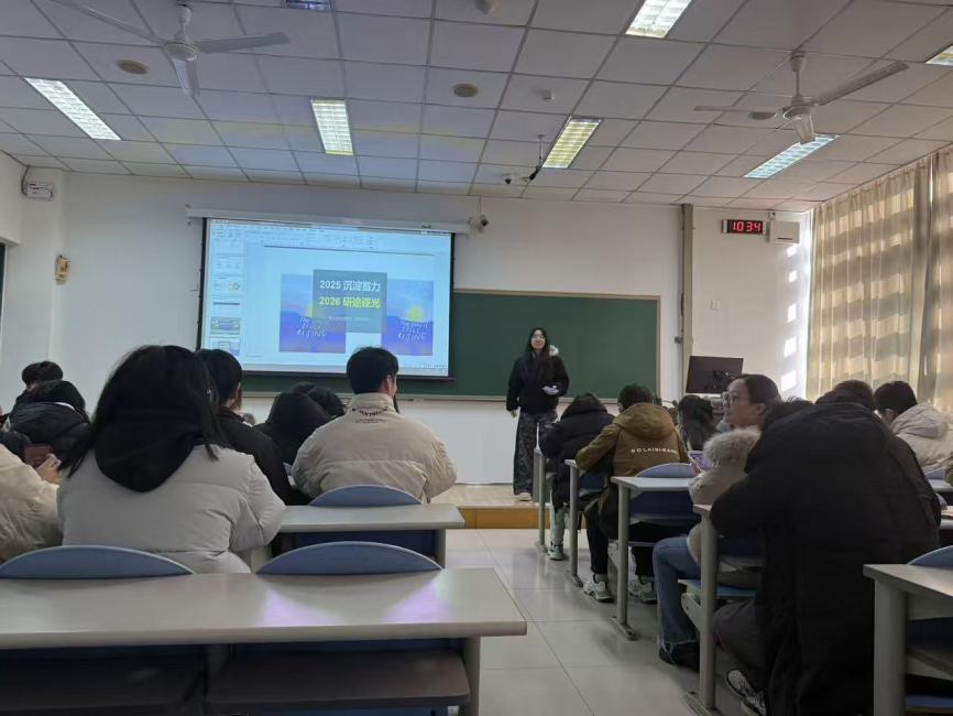 “拾光筑梦,向新而行”——化研2506、07班开展2025复盘与2026规划主题班会。为清晰研究生目标,迈向更美好的明天,12月17日,化研2506、2507班联合开展“拾光筑梦,向新而行”主题班会,复盘了2025年学习科研成果,并规划了2026年成长方向,两个班级的全体同学共同参与了此次活动。班会伊始,班长通过数据统计、案例分享等方式梳理了2025年班级在课程学习、科研项目、学术交流等方面的成果与不足。而在围绕“2026成长规划”上,指出了未来可能面对的问题与困境,建议同学们明确自己的未来规划,保持良好的心态。最后,对班会进行总结,鼓励同学们以此次班会为契机,将复盘经验转化为成长动力,在2026年以更饱满的热情、更清晰的规划投入学习科研,携手“向新而行”,为班级发展和个人成长交出更亮眼的答卷。此次主题班会为化研2506、2507班的同学们提供了回顾与展望的平台,不仅让大家明晰了成长路径,更增强了班级的凝聚力与向心力,为2026年的研究生奋斗之旅吹响了启程的号角。
