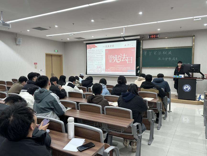化研2502班开展国家宪法日法治教育主题班会。引导学生深刻理解宪法作为国家根本大法的地位和作用,12月17日,化研2502班于综合楼007A举办尊崇宪法权威,法治护航成长主题班会。活动包括发展背景,法律案例分析,启示与思考为主要内容,使成员在活动中增强法治观念,提升运用法律思维分析和解决问题的能力,争做社会主义法治的忠实崇尚者、自觉遵守者和坚定捍卫者。活动在化研2502班班长贺伟剑组织下有序进行。班会从国家宪法日的设立背景讲起,回顾了自1982年现行宪法颁布至2014年正式设立国家宪法日的重要历程,阐释了依宪治国、依宪执政的时代内涵。随后,通过一则“高中生网络欺凌”的真实情境案例,剖析了言行背后的法律边界——宪法保障的人格尊严、民法典维护的个人权利、治安管理处罚法与刑法中的责任规定,使抽象法律条文转化为具体行为指引。同学们在讨论中深刻认识到,宪法并非遥远文本,而是贯穿于日常生活的保护力量。最后的启示部分强调,国家宪法日不仅是纪念,更是教育、普及与深化。它提醒每一位公民,尤其是青年学生,将宪法精神内化于心、外化于行,自觉成为社会主义法治的忠实崇尚者、自觉遵守者与坚定捍卫者。