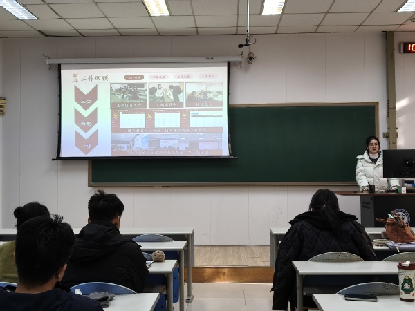 2026年1月9日上午,2025级研究生团支部书记年度述职考核汇报会在南堂101顺利举行,年级团总支书记窦雅琴和全体研究生团支书参加会议。