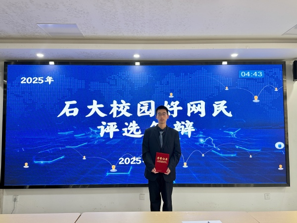 1月5日,学校党委学生工作部、武装部公布了2025年石大“校园好网民”评选结果,学院23级本科生张楚林获此殊荣。本次评选经学院推荐、材料初选、线上投票、线下答辩等多个环节的严格遴选,10个优秀个人及团队脱颖而出,荣获2025年石大“校园好网民”称号。
