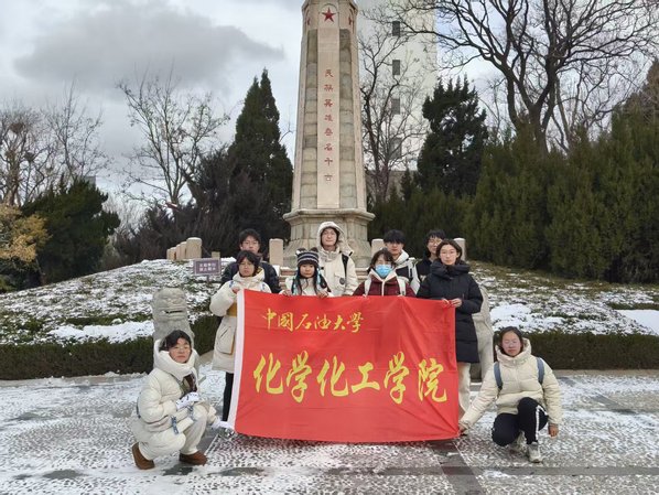 碳链先锋实践队于抗日烈士纪念碑下合影 王宝键摄