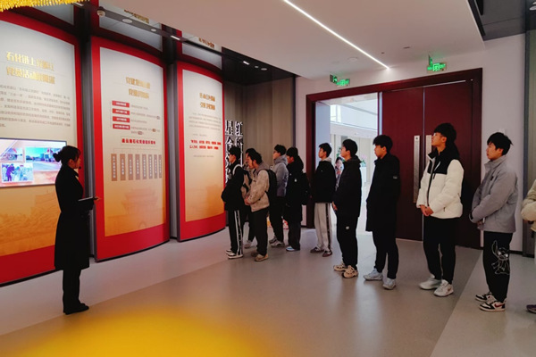 在企业展厅内,队员们跟随讲解员参观,了解了企业的发展历程及党建工作情况。在由小厂家发展到如今的行业巨头的过程中,卫星化学始终坚持技术革新与研发,屡次攻克技术难题,实现了技术自主化。聆听着讲解员的介绍,遍览展厅内的文字,队员们感受到了企业发展历程的艰辛,也深刻认识到了技术创新对于企业的重要性。
