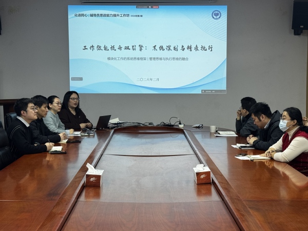 为深入学习贯彻2026年全国教育工作会议精神,提升辅导员队伍系统思维与履职效能,推动学院学生工作高质量发展,2月2日,学院学工团队在工科楼A121会议室举办2026年第二期“化语同心”辅导员思政能力提升工作坊,辅导员窦雅琴主讲,全体辅导员参加。