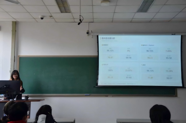班会伊始,田倍佳对班级上学期整体情况进行全面回顾,重点开展成绩分析工作。班长指出,班级上学期整体成绩稳定,学习氛围浓厚向上,各科目及格率、优秀率均保持较高水平,同时明确班级学业仍有较大提升空间,为新学期学业推进指明方向。在总结学业的基础上,田倍佳进一步汇总了班级上学期的荣誉成果,班长提到,班级多名同学积极投身学生工作,分别在学生会、团支委、社会实践与服务中心、双创中心赛事部门等岗位履职尽责,累计斩获十三项个人荣誉、五项团体荣誉,充分彰显了班级同学较强的综合素养与文体能力;此外,上学期班级有序开展各月主题班会,成立学习小组,组织丰富多彩的团日活动,这些举措不仅丰富了同学们的校园生活,更进一步夯实了班级建设基础,增强了班级向心力。