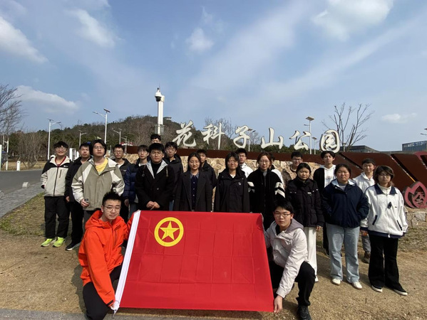 时值仲春,山间草木吐翠,野花初绽。途中,支部提前准备的“环保知识小课堂”开讲,几位团员主动分享垃圾分类常识和本地植物趣闻,让登山过程充满知识与趣味。行至半山腰,支部组织了“绿色发展”微讨论,大家结合专业所学,畅谈对“双碳”目标的理解,团员讨论气氛热烈。