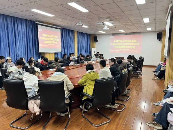 为深入学习贯彻党的二十届四中全会精神,扎实推进树立和践行正确政绩观学习教育,强化支部党员责任担当与党性修养,2026年3月18日,本科生第二学生党支部于工科楼A121召开3月份组织生活。会议由支部书记钱立坤主持,全体党员参加。