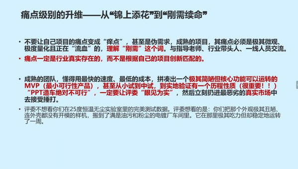 本次指导活动中,任绪乾围绕中国国际大学生创新大赛评审规则展开系统讲解,从大赛主旨、项目创新、产业价值、团队协作等核心评审维度逐一拆解,明确了PPT制作需兼顾“产品创新线”与“成长线”的核心逻辑。他结合自身国赛实战经验,细致分享了PPT各模块的设计思路与展示技巧,强调要打破专业壁垒,打造跨学科互补的成熟团队,同时将导师资源、行业合作等隐性支持转化为项目的显性竞争力,避免空泛表述,让评委直观感知项目的创新价值与落地潜力。参会同学认真聆听、积极互动,提前梳理的PPT制作难题得到针对性解答,对评审标准与展示逻辑有了更清晰的认知。