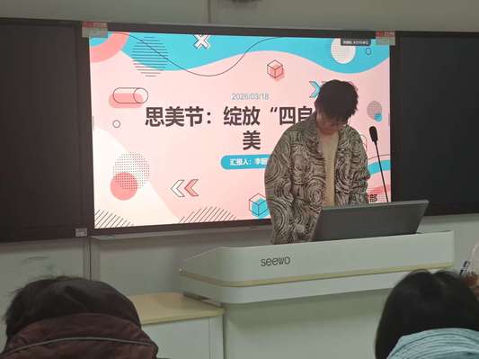 活动伊始,李韶泽围绕思美节的内涵与意义进行系统讲解,向同学们介绍了思美节作为女性成长与自我觉醒的特色校园文化活动的核心价值,引导大家深刻理解节日所倡导的追求真、善、美的理念。他重点围绕“自尊、自信、自立、自强”的“四自”精神展开深入阐述,结合青年学生的学习生活实际,解读“四自”精神的时代内涵与实践要求,鼓励在场女青年坚定理想信念,保持独立人格,以积极向上的心态面对困难与挑战,在不断学习与实践中提升自我、成就自我,努力成长为有理想、有本领、有担当的新时代青年。