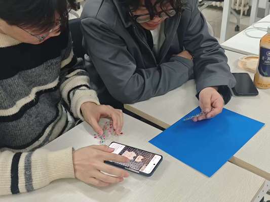 在理论学习结束后,活动进入实践环节。全体支部成员共同参与贴钻石画创作活动,大家围坐在一起,相互协作、认真细致,将美好的祝福与对未来的期许融入指尖创作之中。在轻松和谐的氛围里,支部成员们交流心得、分享感悟,在动手实践中感受美、创造美,既锻炼了耐心与专注力,也增进了支部成员之间的友谊,进一步增强了团支部的凝聚力与向心力。