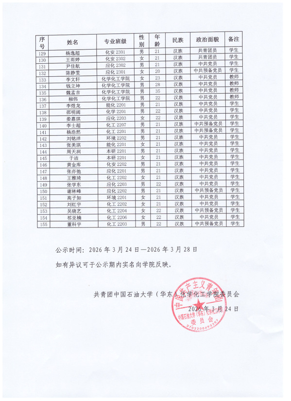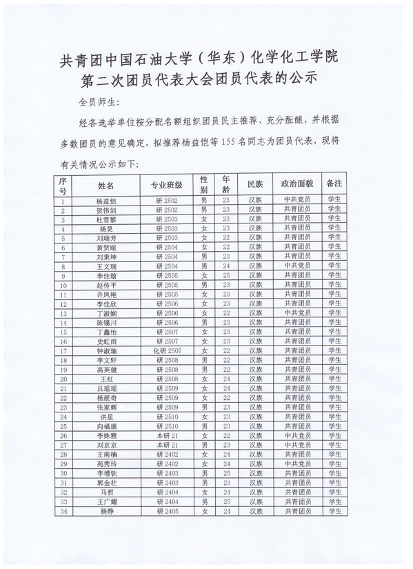 共青团太阳成集团tyc33455第二次团员代表大会团员代表的公示