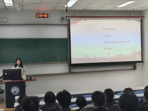2026年3月22日,化工2503团支部在西环103教室召开“深学两会精神 凝聚青春力量”主题学习班会,集中学习十四届全国人大四次会议、全国政协十四届四次会议精神,紧扣“十五五”规划开局起步关键节点,引导支部团员青年把思想和行动统一到国家发展大局上来,强化思想政治引领,筑牢理想信念根基。