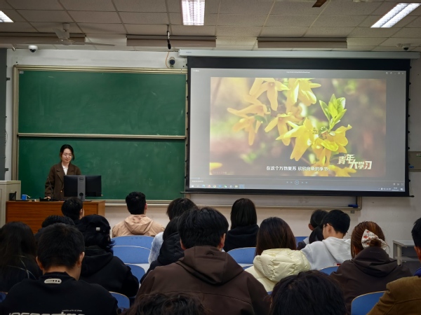 为深入学习贯彻十四届全国人大四次会议、全国政协十四届四次会议精神,深刻把握“十五五”时期承前启后的重要意义,强化青年思想政治引领,3月23日,环境2502团支部在南教114教室开展全国两会精神组织化学习,活动由团支书杨宁婧主持,支部全体团员参与学习。