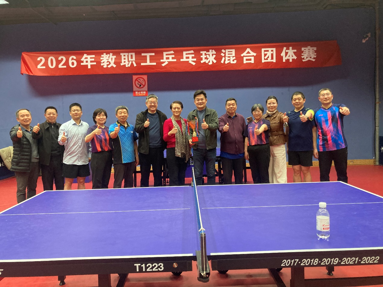 3月26日,2026年太阳成集团tyc33455cc教职工乒乓球混合团体赛落下帷幕。我院参赛队由郝志杰书记任领队,共派出10名运动员,经过8天激烈角逐,最终获得冠军。