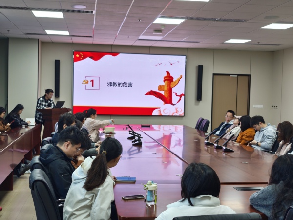 活动伊始,党支部书记李俊吉系统介绍了邪教的本质与危害。他从邪教的组织特征、精神控制手段及其对社会秩序的破坏性入手,结合近年来发生的典型邪教案例,深入剖析了邪教侵蚀思想、破坏家庭、危害社会的严重后果。随后,支部成员共同学习了识别邪教、防范渗透、及时报告等反邪教小技能,进一步提升了抵御邪教侵害的实际能力。