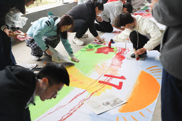 春风送暖,彩绘芳华。4月12日,为预祝学校第十七次团代会顺利召开,学院在工科楼A座室外平台成功举办以“大地承春色,青春绘芳华”为主题的大地彩绘活动。本次活动旨在展现我院25级青年学子朝气蓬勃、奋发向上的精神风貌,传承红色基因,凝聚青春力量,以艺术创作形式为团代会献礼,丰富校园文化生活。