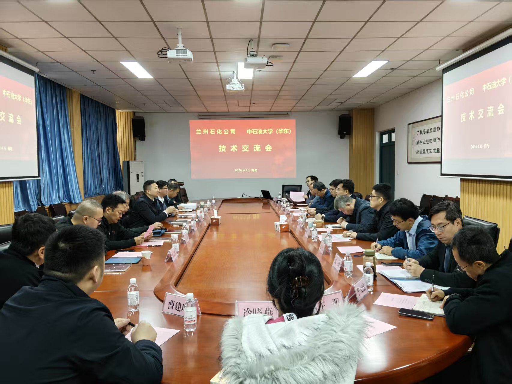 2026年4月16日,兰州石化公司蒋鹏飞副总经理一行七人到访我院,双方在工科A121会议室举行技术交流会议。会议围绕炼油、生物化工、精细化工及双碳领域的关键技术展开深度对话,旨在深化校企合作,推动科技成果转化与产业升级,为石化行业高质量发展注入新动能。会议由学院党委书记郝志杰主持,学院副院长陈小博、教授专家田原宇、王延臻、以及杨军卫、宁汇、赵青山、吕玉超、付建冶、李大伟、王明、曹建琳、冷晓燕等多位教师代表参加座谈。