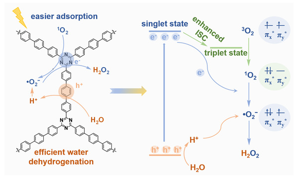 本篇博士学位论文为实现光催化H2O2的高效生成与原位利用,以有机聚合物为平台,通过官能团设计,系统性强化了电子、O₂和H⁺的供应,并在此基础上实现了光生H₂O₂的原位高效利用。