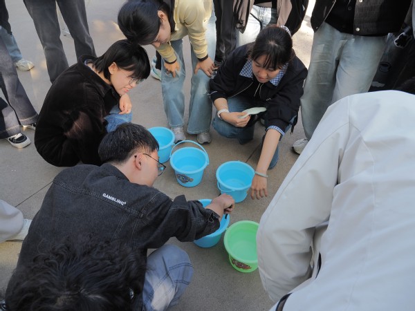 全体同学在工科楼A座大厅集合,通过随机抽签分为若干小组,轻松有趣的破冰自我介绍快速拉近了彼此距离,营造出热烈融洽的活动氛围。随后,各队伍前往户外场地,依次参与连词成句、快问快答两项团队游戏。连词成句环节中,同学们集思广益、默契配合,将随机词语组合成完整语句,展现出出色的语言组织与临场应变能力;快问快答环节围绕春日科普、校园常识、考研就业技巧展开,大家踊跃抢答、积极互动,在趣味答题中增长知识、活跃思维。顺利通关的队伍前往工科楼A座后门,参与终极挑战——盲人接水游戏,蒙眼同学在队友精准的语言指引下完成接水任务,充分考验了团队信任与高效沟通配合能力。活动最后,全体同学在春日景致中拍摄创意合照与集体大合影,工作人员为优胜团队颁发奖品,为所有参与者送上纪念礼品,现场洋溢着青春活力与温暖气息。
