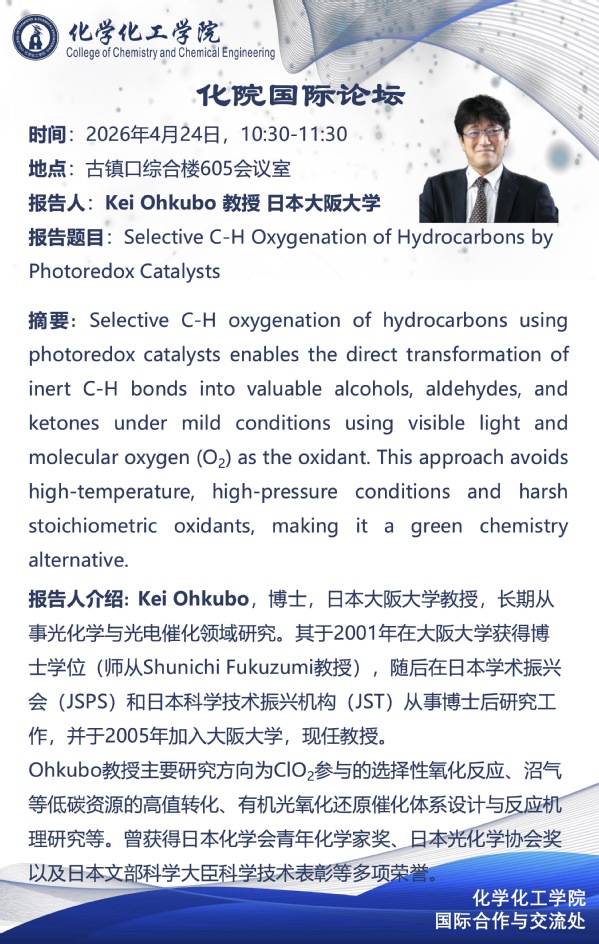 【预告】学术报告:Selective C-H Oxygenation of Hydrocarbons by Photoredox Catalysts