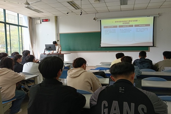 随后,团支书带领团员回顾百年党史中的自力更生与创新攻坚精神,从革命年代南泥湾精神的自主探索,到“两弹一星”等重大科技突破的创新魄力,再到改革开放以来制度创新的强劲动力,系统梳理了党在困境中开拓创新的奋斗历程,引导支部成员传承红色基因,将自力更生传统转化为科技自立自强、关键核心技术攻关的时代责任。