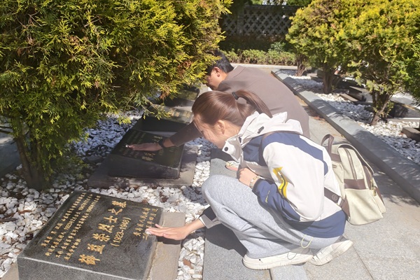 支部成员们擦拭烈士墓碑 杜梦蝶摄