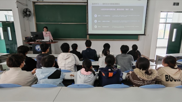 在案例学习环节,支部聚焦绿色石化与新能源前沿,分享了低碳催化技术、生物可降解材料、钙钛矿太阳能电池等创新成果,展示了化学学科在服务“双碳”目标中的广阔应用前景。支部成员认真聆听、深入思考,进一步明确了将专业所学与国家绿色发展战略紧密结合的努力方向。