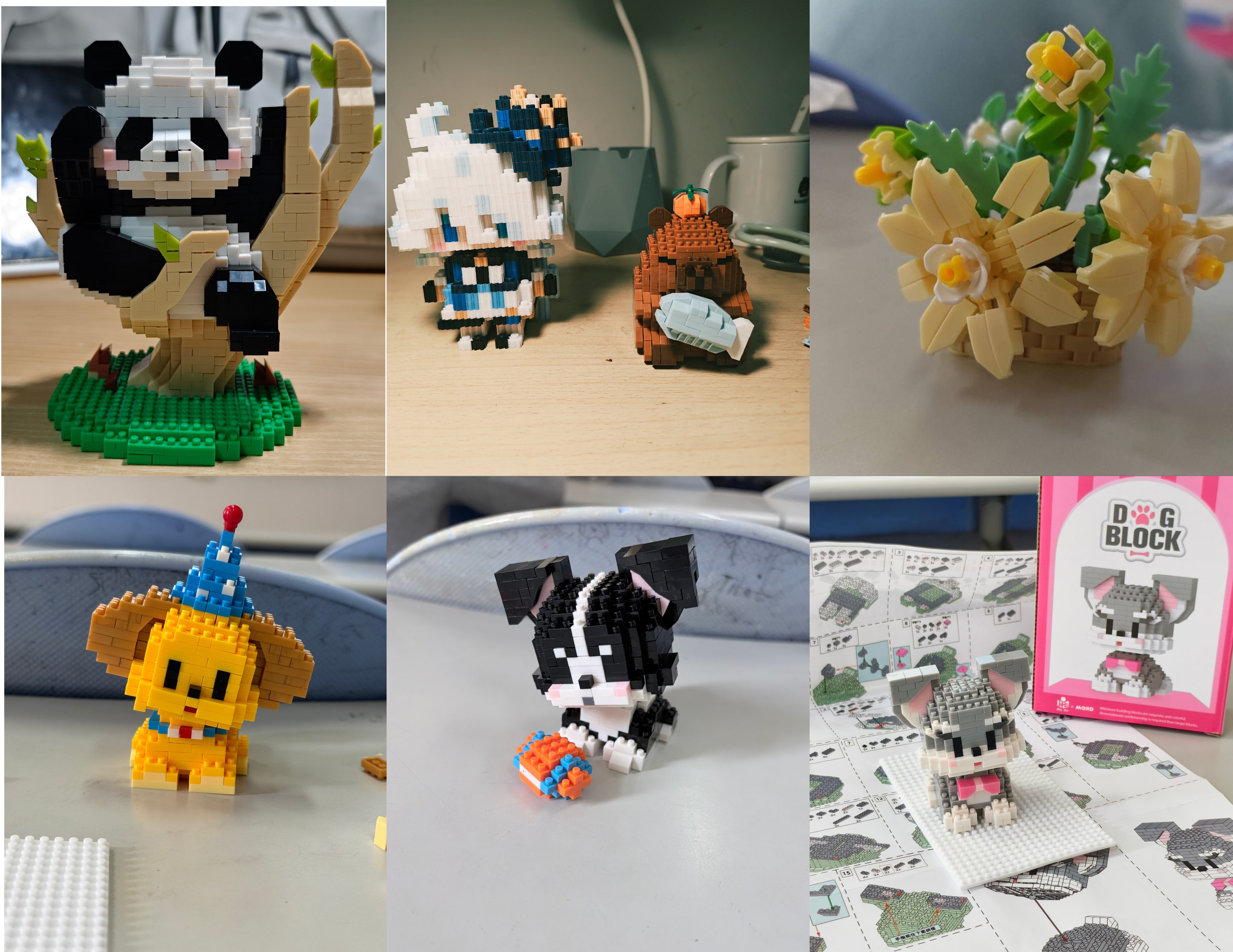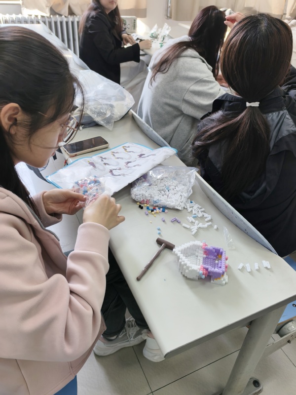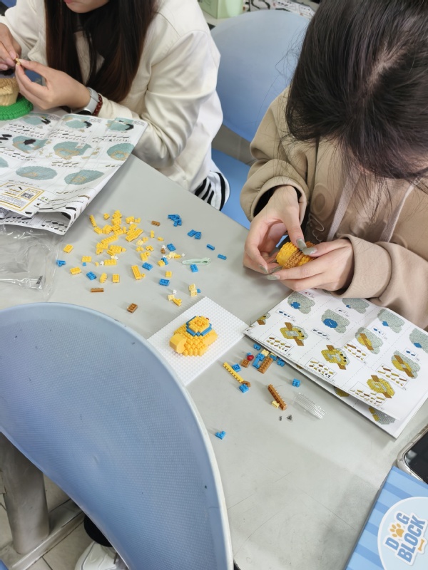 活动现场布置温馨雅致,氛围松弛又治愈。同学们有序到场,纷纷挑选心仪的积木款式,领取拼装零件、工具与参考图纸后落座就位。褪去科研学习的匆忙与浮躁,大家沉心静气、全心投入,专注投入积木拼装创作。细碎小巧的积木颗粒,在一双双巧手下不断拼接、组合、堆叠,一点点勾勒出完整造型。经过几小时的沉浸式创作,一件件充满巧思的积木作品陆续诞生!神态灵动的雪纳瑞、软萌可爱的牧羊犬,还有创意满满的春日主题造型。大家以积木为载体,将春日的温柔、闲暇的惬意与生活的小美好尽数收藏,在忙碌的科研生活之余,收获一份简单又珍贵的小欢喜。